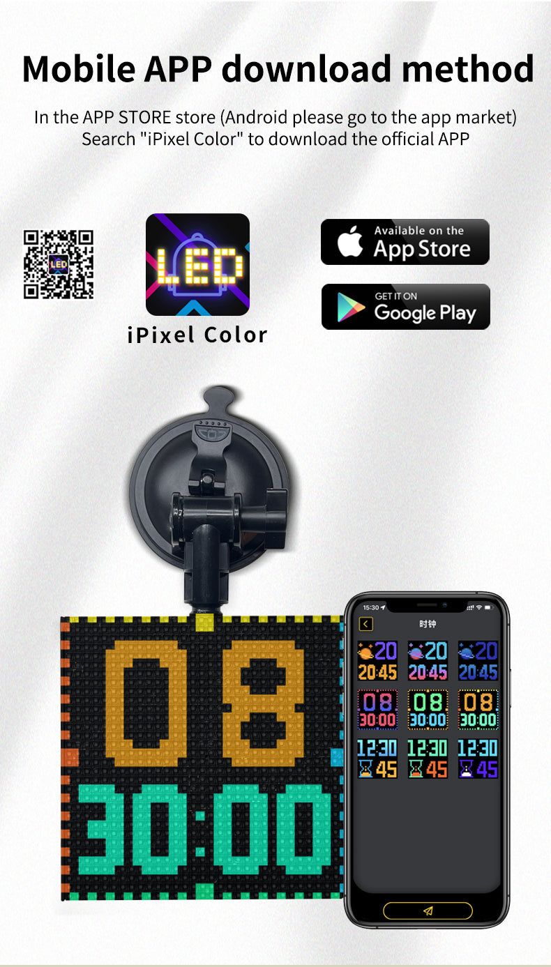 2. التحكم عن بُعد: مناسب لأنظمة iOS وAndroid. يمكنك مسح رمز الاستجابة السريعة الموجود في الدليل لتنزيل التطبيق. سهولة التحكم في شاشة LED عن طريق توصيل الهاتف عبر البلوتوث.