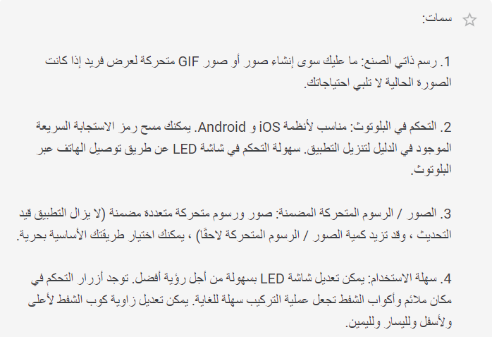 4. سهولة الاستخدام: يمكن تعديل شاشة LED بسهولة من أجل رؤية أفضل. توجد أزرار التحكم في مكان ملائم، وأكملها بالسحب لتسهيل عملية التركيب النهائية. يمكن تعديل زاوية العرض على اليسار واليمين.